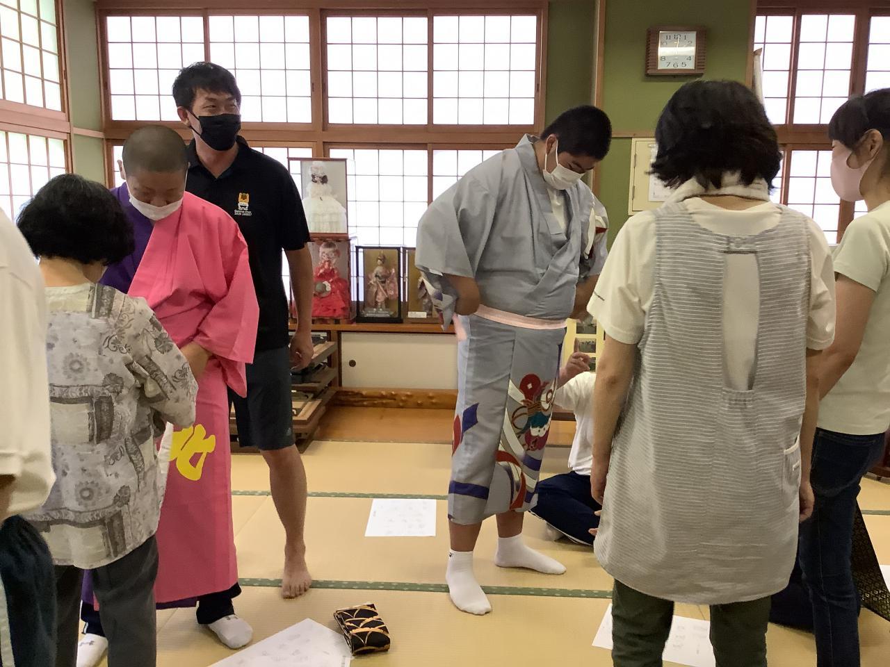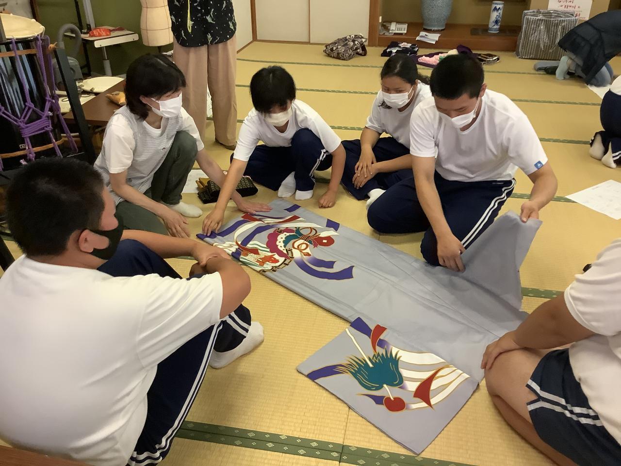 着終わったあとは、丁寧に片付けます。なかなか難しいようですが、指導していただいたおかげで、最後は完璧に折りたたむことができました。