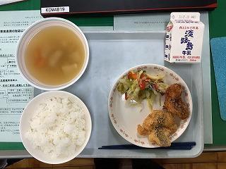 プールの後は給食です。今日は、地産地消食材。メインは「鱧のフライ」でした。先日、テレビで淡路から京都へ向かう「ハモ道中」をやっていました。いにしえより 御食つ国 淡路 の食材は京の都で重宝されていたのですね。きょうの沼島中の給食は一食308円。それで、沼島のハモを食すことができるのですから、本当に給食ってありがたいです。食材は提供してくれた漁師さん、調理してくれた給食センターの方々、本当にありがとうございます。職員室でも鱧が話題にのぼりましたが、「『鱧すき』・・・何??」という先生もいました・・・せっかく、沼島でお世話になっています。地域に根ざした食育を進めましょう