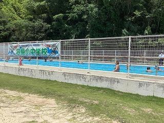 今日は、久しぶりに沼島の空は、抜けるような青空でした。4時間目の保健体育は「プール」でした。水しぶきが舞う中で、みんな涼しげに気持ち良さそうに遊んで?いました。
