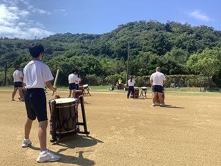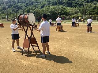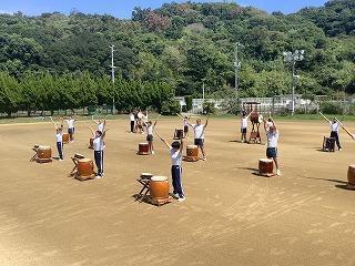 秋空、秋晴れの気持ちのいい日です。今日は、武神太鼓、初めての外練でした。短期間でほんとに、みんな頑張ったね。みんなかっこよく演奏、演技してしました。秋空に響く力強い太鼓の音に観光客の皆さんも思わず足を止め、拍手を送っていました。稽古は明日だけです。20日のスポーツフェスティバルです、偶然、奇跡的に出会った令和4年度沼島中学生。「継往開来」古き良き伝統と新しい力をしっかりと融合させ、力強い武神太鼓の音を轟かせてくださいね。