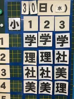 本日行われる予定であった期末テストを明日30日(水)に、明日予定されていたテストは明後日12月1日(木)にスライドさせますので、テスト調べ等への対応をご家庭でもご確認してあげてください。念のため、明日、明後日の時間割を下に記しておきます。