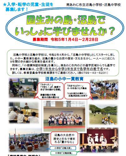 令和5年度沼島小中一貫校 小規模特認区生の募集