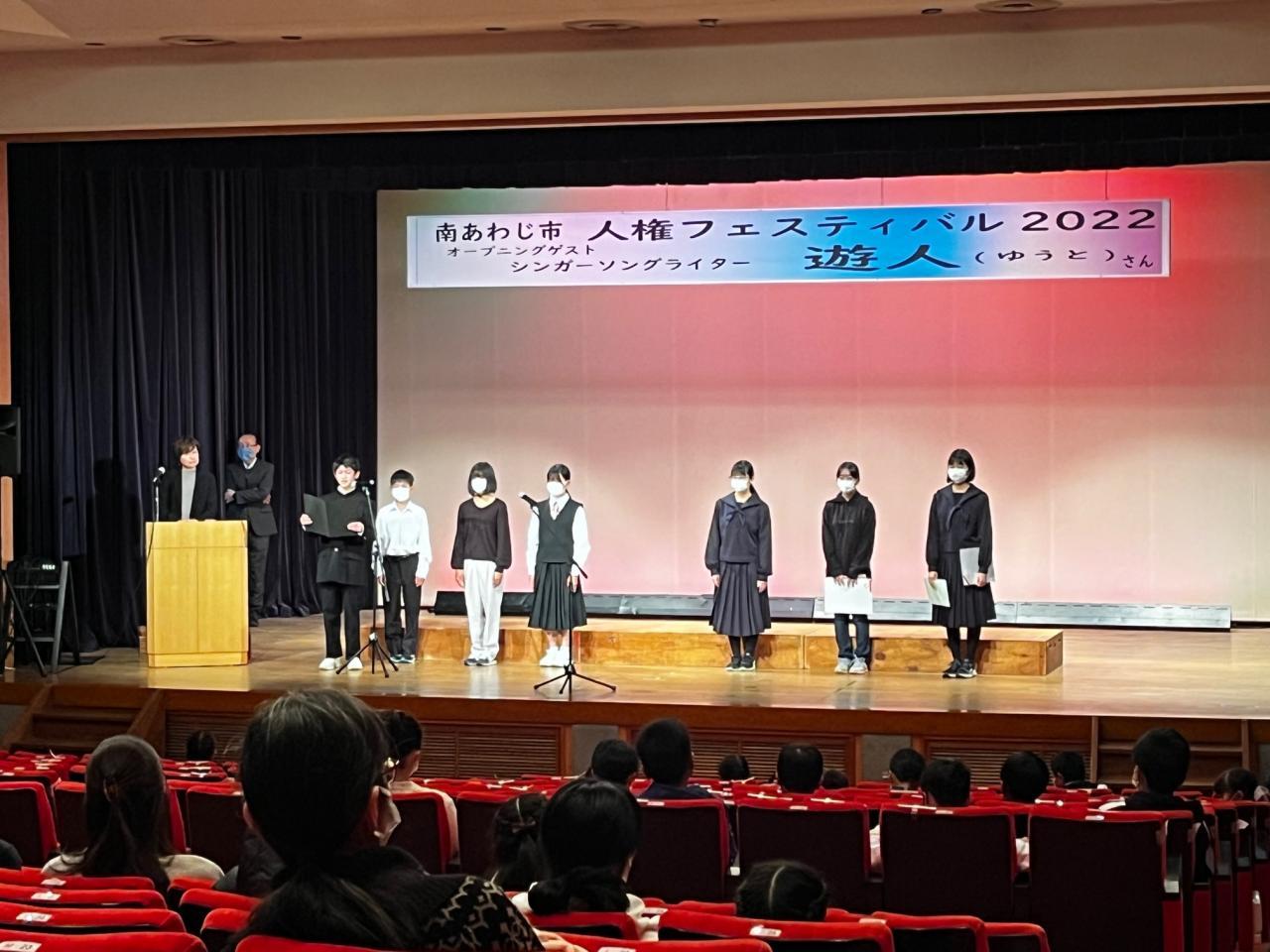 さて、そんな中、昨日、中央公民館で「人権フェスティバル2022」が開催されました。本校から1年生の平田さんが出席し、自身が書いた『男女差別をなくすには』を発表しました。