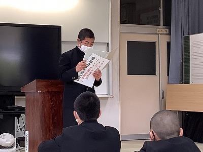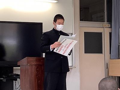 本日、3学期修業式を持って令和4年度は終了です。特認区生を迎えて大きな変化の中でスタートした令和4年度でした。その大きな変化の中で、トラブル、葛藤、心配・・・いろいろあったとは思いますが、何とか1年間何事にもしっかりと取り組めた1年だったと思います。ご苦労様でした。キミ達のがんばりも大きい要因ですが、地域、各種団体、報道等多くの方に応援していただき、支えられた1年でした。その感謝の気持ちは、そのときどきの感謝の言葉だけではなく日頃の一生懸命に前向きに何事にも、挑戦し取り組む姿勢で引き続き見せていってほしいものです。そして、見える形で続けてほしいのは「あいさつ」です。嶋本くんは卒業式の送辞の中で「大きな声であいさつする先輩に感心し見習ったこと」、今日の執行部の反省では「あいさつを新入生にも伝えていくこと」を述べていました。良き伝統として大切にしていって下さい。さあ、春休みです。2年生は、学校のリーダーとして、進路決定の大切な1年となる3年生に、1年生は、始めて中学校で後輩を迎え、言葉で背中で指導する立場の2年生になります。「変わらなきゃ」の気持ちで春休みを過ごしてほしいと思います。