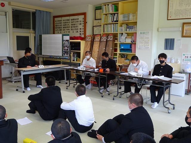 生徒会は、生徒全員が所属する自治活動です。リーダーに、もしくは誰かにやってもらうものではありません。自分たちで、自分たちの生徒会を大切にし、自分たちみんなが気持ちよく学校生活が送れるように取り組む活動です。一人一人が学校生活をより気持ちよく、安心して過ごすためにできることを実行し力強い生徒会、生徒会活動を進めてほしいものです。