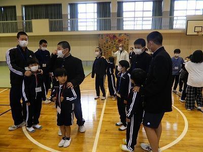 そのサッカーでの出来事。今年度から小学校に赴任してきた上川校長先生。もともとサッカープレイヤーだけに血が騒いで?昼休みサッカーを楽しんでいたところ「ブチっ」とアキレス腱が・・・準備運動不足、日ごろの運動不足、「できる」という錯覚・・・私も昨年、何かのときに卒業した地中学生の後を追って走った時に見事に転倒しました(中学生の時に鍛えられた相撲の華麗な受け身でけがはしませんでした。護身術は大切です)本当に気持ちは前に行っているのに、体は・・・私と上川先生は同い年の同級生。お互い身の丈にあった教育活動を行います・・・児童生徒にとって「心配り」「気配り」「介助」のモデルとなります。どうすれば、より不自由なく学校生活が送れるか考えてね。