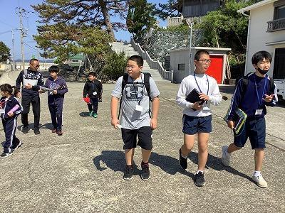 昔は、中学校も校外学習の名のもとに、どう考えても「遠足」っていう行事がありましたが・・・沼島中学校では、今年から小学校との一貫校の利点として「春の遠足」を実施しました。本来は、先月26日に実施予定でしたが、悪天候のため、体育館で1年グループとして活動する班を発表した後、新入生歓迎ゲーム大会を行いました。そして、今日は、春いや初夏に近い日差し、さわやかな風を受けながら各班は、小学生と中学生が協力して沼島ウォークラリーに出かけました。ミッションは2つ。チェックポイントで、班の楽しそうな集合写真を撮ること、そして、沼島に関するクイズの回答を探すことです。1時間ちょっとのウォークラリー中は「時間ないで」「中学生、早く、行くぞ」(年長者に対する言葉遣いを学ばないといけませんねぇ・・・)と沼島地区の小学生がリーダーとなって?班を引っ張ってくれていました。帰ってきて、それぞれのグループから活動報告があり楽しかったです。発表では、班長が中学生としてしっかり発表できていましたよ。