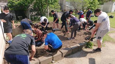 沼島中学校では、校庭の一部を活用し野菜栽培に取り組んでいます。昨年は、サツマイモのツルを植えたのですが植え付けが遅くなりあまり「大収穫」とはいきませんでした(正確にはほぼ収穫なしでした・・・)。今年は、取組を早め、今日、苗、ツルの植え付けを行いました。決して、食糧確保ではありません。技術の栽培の分野として取り組みます。まぁおいしく食べられる方がいいに決まっています。しっかり観察して、お世話をして実り多き収穫を目指しましょう。