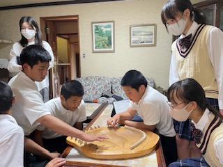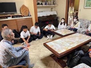 23日(火)は沼島八幡神社第14代 沼津知明 宮司 宅に伺い、沼島の歴史についてお話をしていただきました。沼島八幡神社は室町時代からあったことや神社内にいは「絵馬」がたくさん描かれていること、「凡牟都和希王(ホムタマケノミコト)」という神様がまつられていること、沼島の形が勾玉状になっていることから沼島という名前がついたこと(南あわじ市の沼島のHPをご覧ください)、になど生徒たちにとって初めて知ることばかりです。沼津先生、貴重なお時間なに、ご講話いただき本当にありがとうございました。