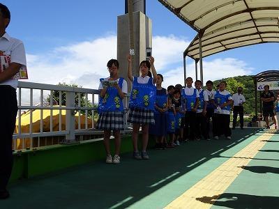 その熱い日差しの下で、本日「沼島の魅力発見 ゴミゼロキャンぺーン」に参加しました。これは、1年生の山田汐夏さんが昨年、南あわじ市子ども議会で提案した「沼島の魅力発信とゴミゼロ」が運動、キャンペーンとして形となりました。沼島観光に訪れた方々に、山田さんからキャンペーンと取組の趣旨の説明を聞いていただいた後、沼島中学校1年生、小学生が「ようこそ沼島へ」「ゴミの持ち帰りに協力お願いします」「熱中症に気を付けてくださいね」とエコバックと沼島のシンボルキャラクター『ぬしマリン』ステッカーを配布しました。児童生徒の元気な声掛けに観光客のみなさんも笑顔で沼島に上陸されていました。参加者のみなさん、お疲れさまでした!!