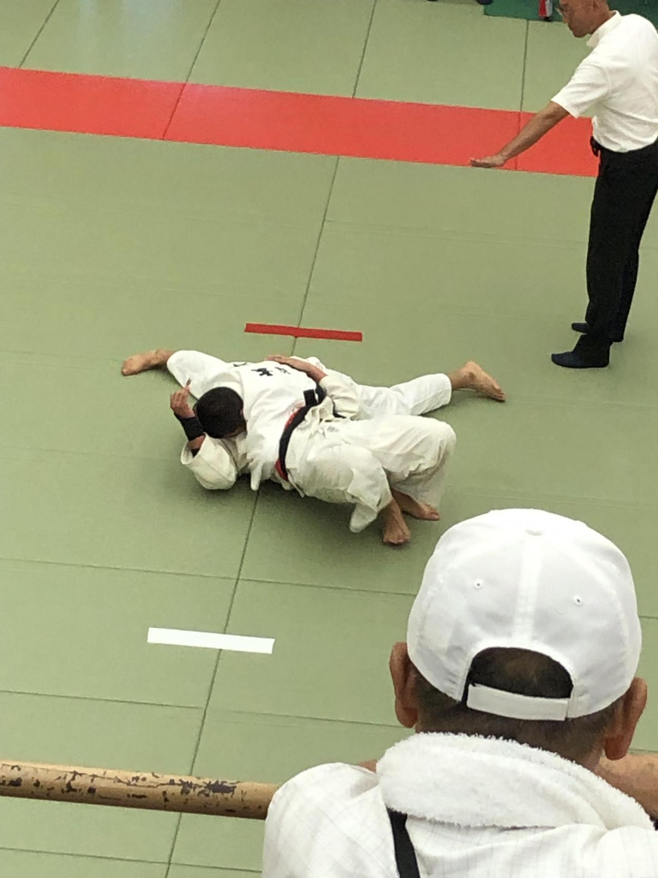 試合の残り時間あと5秒。相手選手は技アリでリードしていました。敗戦濃厚でした。でも、嶋本選手は諦めていませんでした。ラスト5秒で技アリを取り、その上、相手に指導をとらせ、見事、逆転優勝🏆‼️
