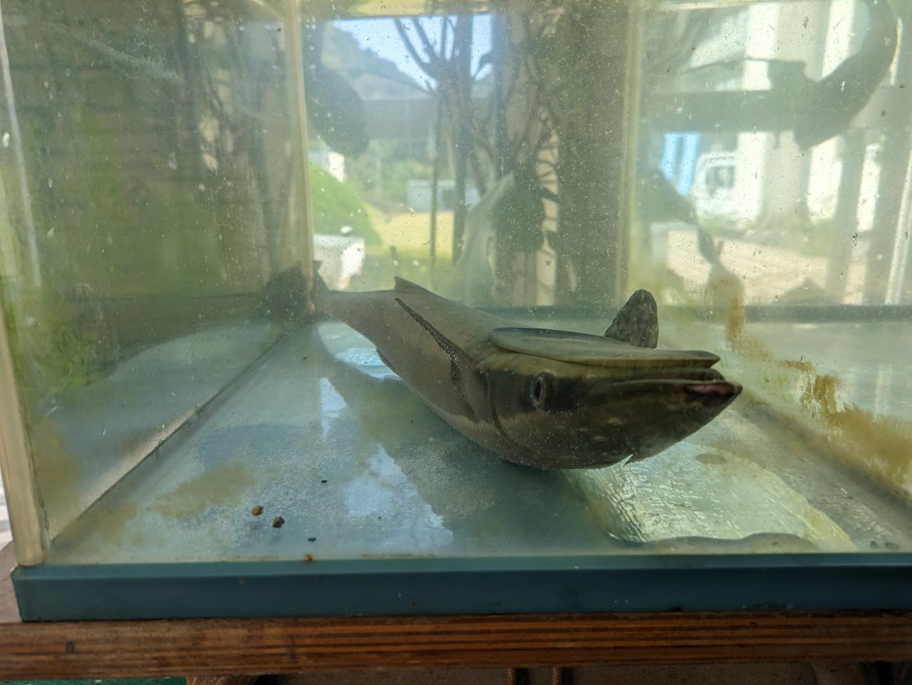 みんなに貴重な体験をさせてくれたコバンザメ。職員会議中に水槽を飛び出てぴちぴちぴち・・・水槽には、すぐに戻したのですが職員会の後、見に行くと大変弱っていました。これはいけないとすぐにリリースしましたが・・・