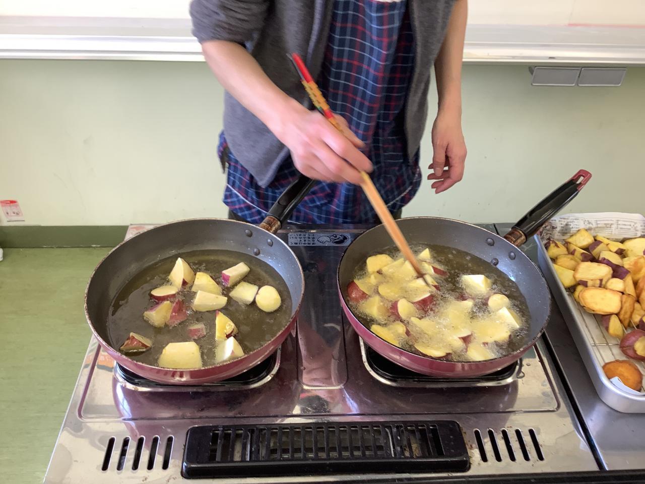 今日、1年生が沼島農場で自分たちが育て収穫したサツマイモで大学芋、スイートポテトを作りました。みんな大好き調理実習です。今日習ったことを、おうちで復習してみましょう。「学而時習」 楽しいですよ。とその前の出来事ですが、習う以前に「習う」心構えができていません。8人中5人、男子だけで見ると6人中5人が「エプロンを忘れました」だって・・・全員柔道部だったので言い換えると試合に「道着、忘れました」レベルの話ですよ。怒られてなんとか調理実習は、できたみたいですがちょっと意識が低すぎませんか。それとも今まで「忘れました」でごまかしてすり抜けてきたりでしょうか・・・大いに反省すべきです。