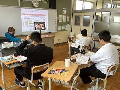 生徒会長がひざ手術のため2学期は登校できません。久しぶりのオンライン授業です。ほんとに使い方によっては便利なツールですよね。自宅学習に励む会長にみんなの姿と給食(写真だけ)をお届けします。