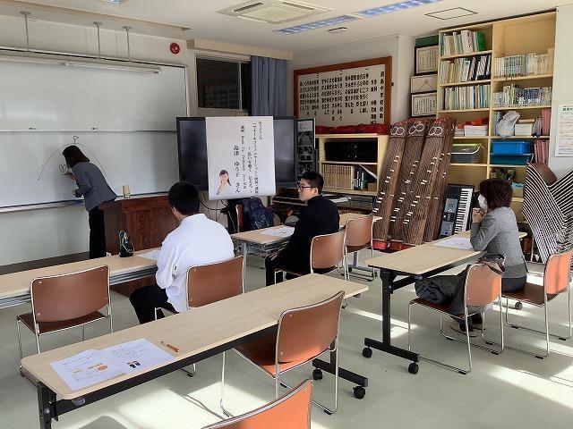 年末、学期末押し迫ったこんな日も、沼島中学校ではゲストティーチャーを招いて学習しています。イベント?の多さが我が校の特色です。今日は企業、全国の小中学校でマナーの意味と命の大切さを伝える心を育む授業に取り組まれており、フリーアナウンサーでもある島津ゆう子先生を講師に迎えてのマナー講座です。しかも、欠席等でなんと講師2名、受講者3年生2名の贅沢な講座です。少人数の手厚い指導も我が校の特色です。