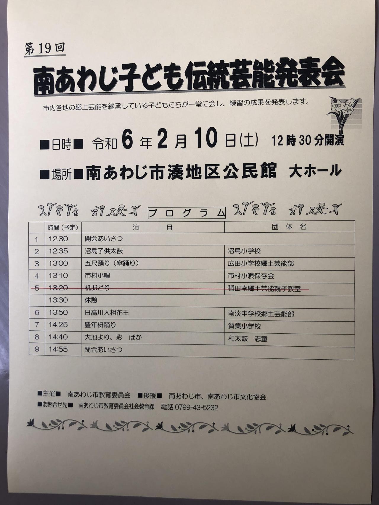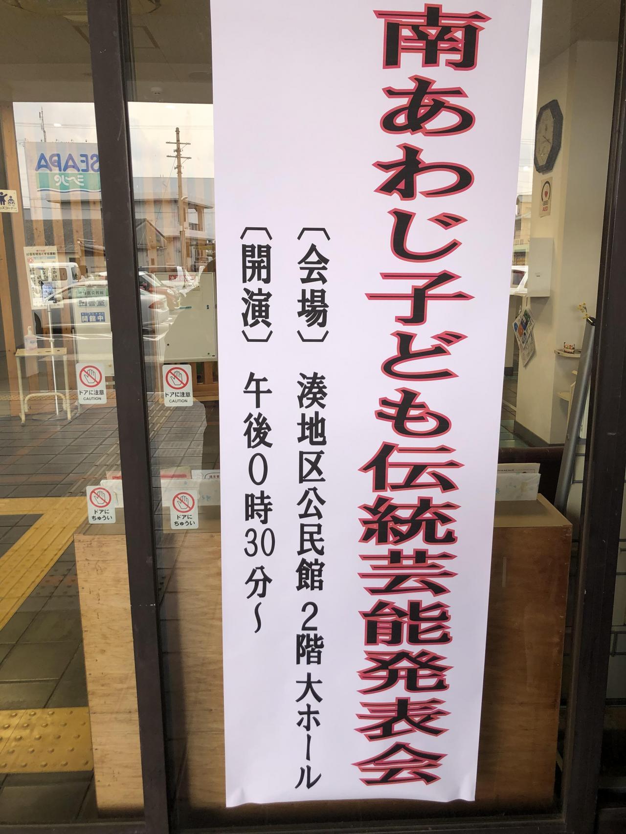 2月10日土曜日。ここ湊地区公民館大ホールにて、「南あわじ子ども伝統芸能発表会」が開催されています。