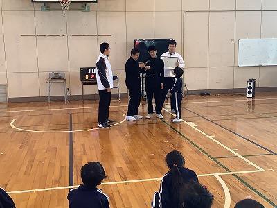 「みんなの特技 広めな祭(さい)!」今年も始まりました。昨年から始まった児童生徒会企画です。今回は、12組に分かれて児童生徒みんながそれぞれの特技を見せてくれました。「おーっ」という技、笑いを誘う芸など見ごたえありました。石川さん、松村さんの一芸一芸に対する味のあるコメント、正田さんの最後の挨拶もみんな柔和ないい表情で冬の凛とした寒さの空気をやわらげ温めたようです