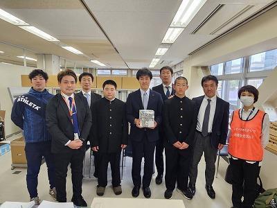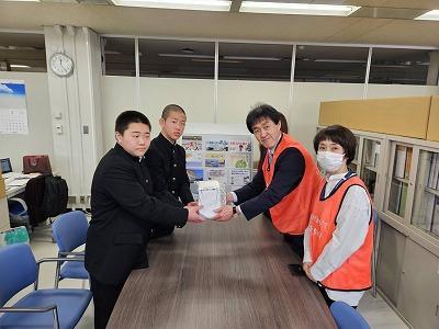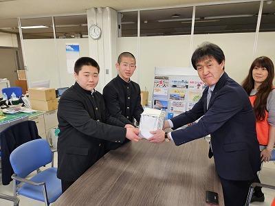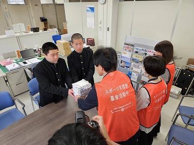 「今回の募金は、能登半島地震で被災したことで、スポーツ用品を無くし、スポーツをしたくてもできなくなっている方々に届くようにお願いします」と児童生徒会を代表して、松村くんと小林くんから一言を添えて、皆様から預かった150,744円を手渡しました。