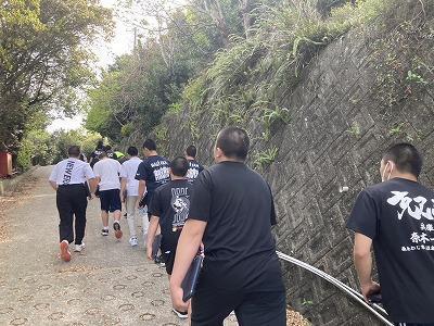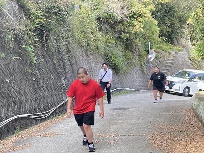 来週23日には、沼島での地震、津波等を想定した避難訓練をします。今日は、灘土生港にいるときに、地震が来て津波が予想される場合での高台への避難訓練を行いました。短時間で高台へ逃げるルートでなかなかハードな経路です。しかし、もし小学生と一緒だったら、もしご高齢の方と出会ったらと考えると中学生は、自分の命を守りつつ、他者を守る立場としても期待されていますよ。