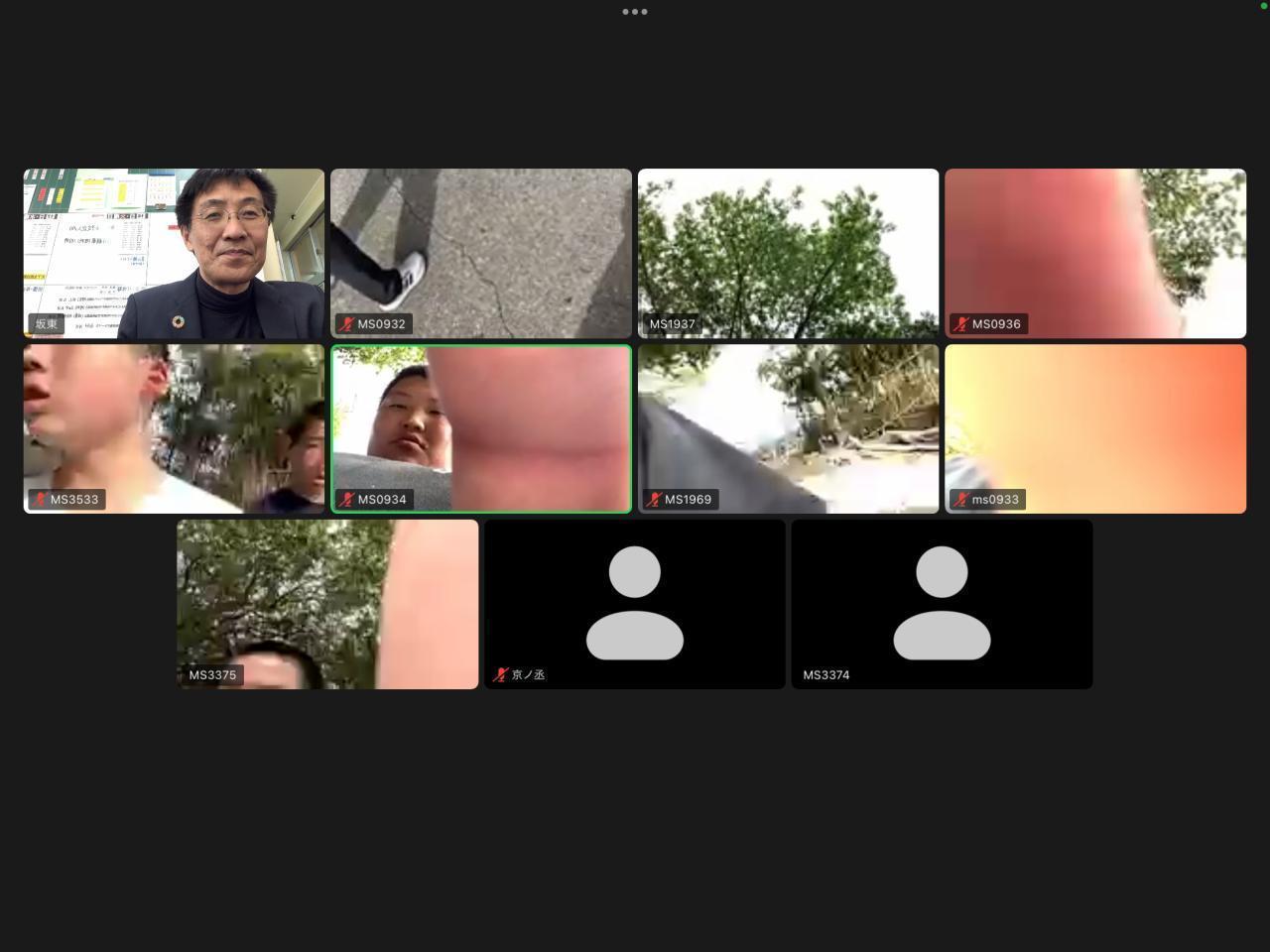 という一連の流れで避難訓練を行いました。それぞれが「災害時・安全確認カード」を書きました。ただ必要な情報を伝えることができたのかというと課題はの残ります。また、みんながZoomにつなぐとハウリングを起こしました(冷静に、「ミュートにして」と指示を出せる生徒もいました)。明日以降の防災学習で再点検せねば・・・さらにタブレットを忘れている生徒もいたりして・・・緊急時はそんなことも想定されますよね。友達がタブレットを忘れていて必要な連絡ができない場合はどうすればいいのか・・・実際、机上ではなく実践して見て見えてくること、考えることも多かったですね