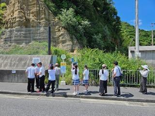 6月21日(金)。沼島の対岸にある淡路島の地層を2年生が観察してきました。南あわじ市「地学の会」会長の野田さんが地層について色々と教えてくださいました。