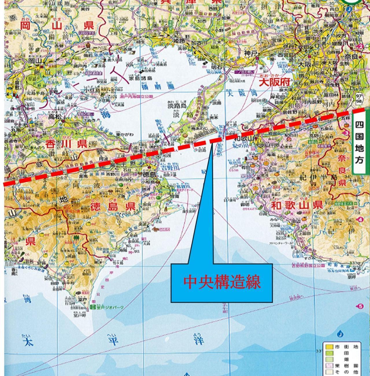 沼島と灘との距離は約4㎞。この4㎞の間を中央構造線(西南日本を九州東部から四国そして沼島と淡路島の間を通り和歌山、さらに東海地方を横断し関東まで続く世界第一級の断層)が走っています。みなさん、知っていましたか?