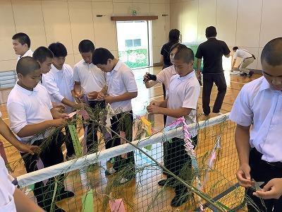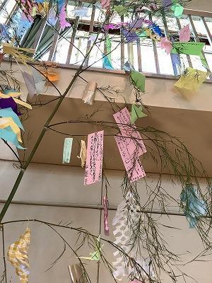 今日は、沼島小中学校の恒例となった七夕集会です。小学生が、中学生がそれぞれの願いを短冊にかいて笹に願いを込めてかけました。七夕っぽい飾り短冊を多く笹に飾りました。みんなの願いは叶うかな・・・