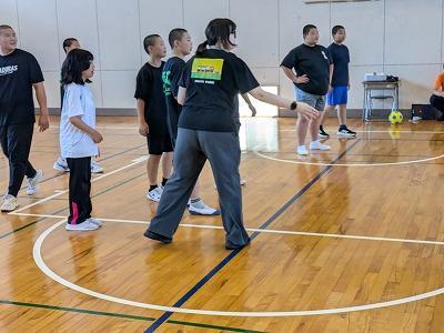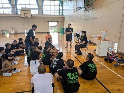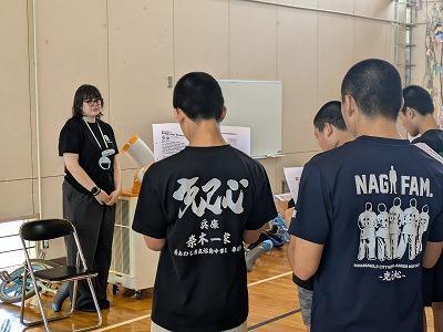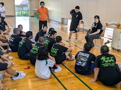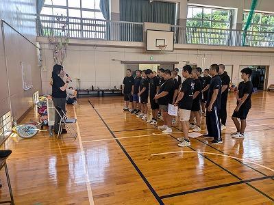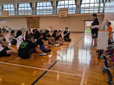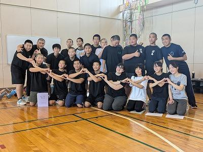 柔道部では普段の練習だけではなく休みでも島外、県外まで大会の応援にきてくれ、文化部とは一緒に楽しく活動してくれました。授業では少しでも英語に興味を持てるようにと楽しませてくれました。そのケイトリン先生とも今学期でお別れです。8/6にはロスアンジェルスに帰り新しい一歩を踏み出すということです。本当に沼島を、沼島の生徒と愛してくれました。7/18がケイトリン先生にとって最後の沼島中学校での一日となりました。気持ちのこもったケイトリン先生を送る会が行われました。まずはドッチボール・フリスビー。ケイトリン先生にも活躍してもらうおうとフリスビーを渡したり、投げた球に当たる演出をしたり・・・そして、イントロクイズ大会、ケイトリンクイズとみんな一生懸命に答えました。最後は、ずっと練習してきたお別れの曲をカタカナ・・・いや英語でケイトリン先生に届けました。ケイトリン先生も涙と笑顔で歌声を受け止めてくれました。子ども達との「思い」を胸にアメリカでも大活躍してくださいね。本当にありがとうございました。生徒のみなさんも、温かい演出、気持ちのこもった歌声、スピーチ・・・ありがとうございました。