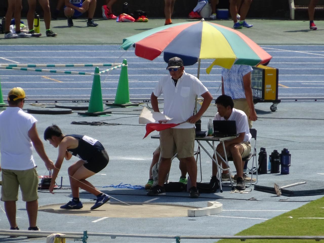 7月27日土曜日。昨日に引き続き、加古川運動公園陸上競技場で、県総体陸上競技大会が行われています。昨日の円盤投げに引き続き、平田選手が砲丸投げに出場しました。沼島地区は昔から陸上競技に関心が高く、今回、平田選手が県大会に出場することに島民の方々も喜んでくれました。