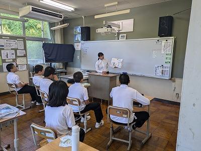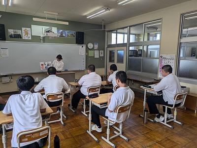 みなさん小学校の先生希望ですがいきなりの中学デビューです。防災をテーマとした読み聞かせをしてくれました。さすがに小学校の先生を目指す貴重な逸材だけに、情感ある読み方をしてくれていました。内容に合わせてしっとりと語りかけたり、元気いっぱいに読んだりと感性あふれる絵本の時間でした。今日は出会いだけでしたが、ぜひ中学校の授業を見学したり、実際、授業にも挑戦見てくださいね。ぜひ、神戸で中学生にあった時に「せんせ」と声をかけられて恥ずかしい思いをするぐらい中学生とも仲良くなってくださいね。うちの中学生、おもしろいですよ