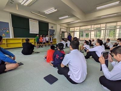 沼島小1年・2年生が「自分たちの思い」を届けと1学期から缶バッチと折り紙で沼ロゴ入りの法被を作りました。それを今日はみんなで三崎中・みさき小の仲間への贈り物として袋詰めしました。縦割り班で協力しながら和気あいあいと作業しました。今日、宿舎での部屋割りも発表されました。中学生は小学生をしっかりサポートしていきましょう。