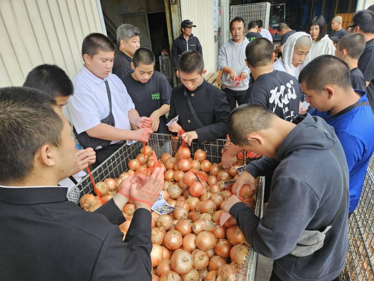 試合の後、原田青果さんの作業場で三崎中、みさき小グラウンドの仮設住宅に届ける玉ねぎのネット詰めをしました。原田青果さんは能登半島地震で被災された方に南あわじの美味しい玉ねぎを届けようと声をかけさせてもらうと、即答で「協力しましょう」と玉ねぎを提供してくれました。募金と合わせて明日から珠洲市に届けてきます。ありがとうございます。