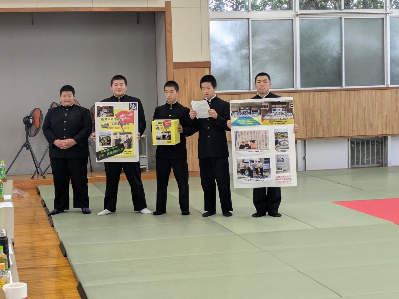 最後の最後のお願いに参りました。 どこかで聞くセリフですが、本日、柔道大会会場で3年生が最後の募金のお願いをしました。柔道部の保護者の皆様にはかわいいお子様のお願いに応えて何度も募金に協力いただきました。ありがとうございます。いよいよ明日能登半島に向かいます。皆様方の温かい心配りを沼島小中のみんなが代表して珠洲市の子ども達に届けてきます。