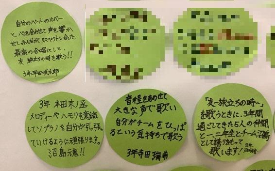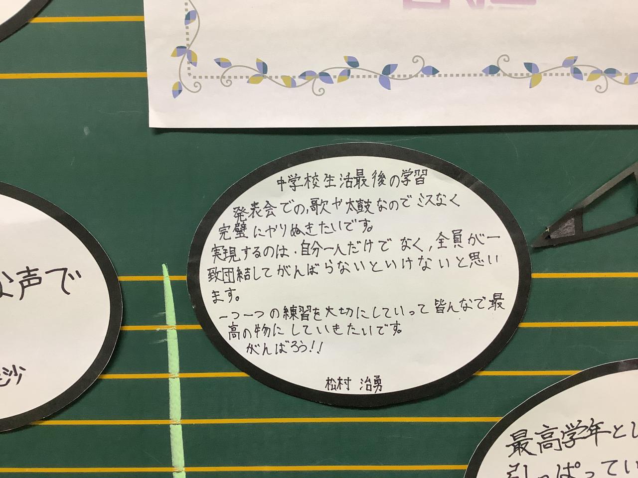 合唱も、音だけ、声だけ聴いているとすごくよくなってきました。一方、目を向けると一生懸命に声を出し、「感動できる合唱」を届けようとしている子を見るとさらにジーンときます。しかしながら、まだまだ「いい顔」で歌えていない子もいます・・・もう何回かしかこの仲間と歌うことができません。出し惜しみしている自分はいませんか?