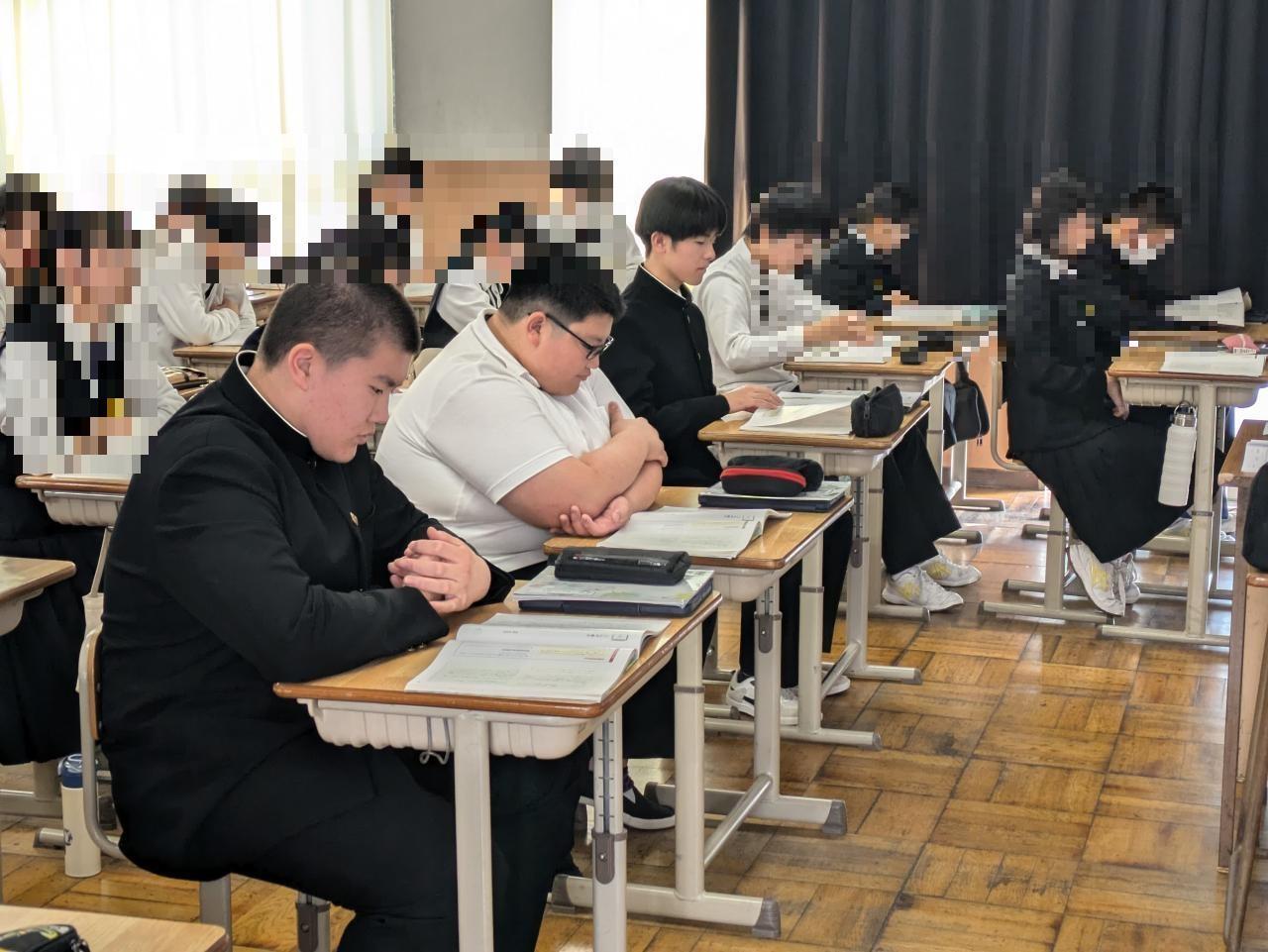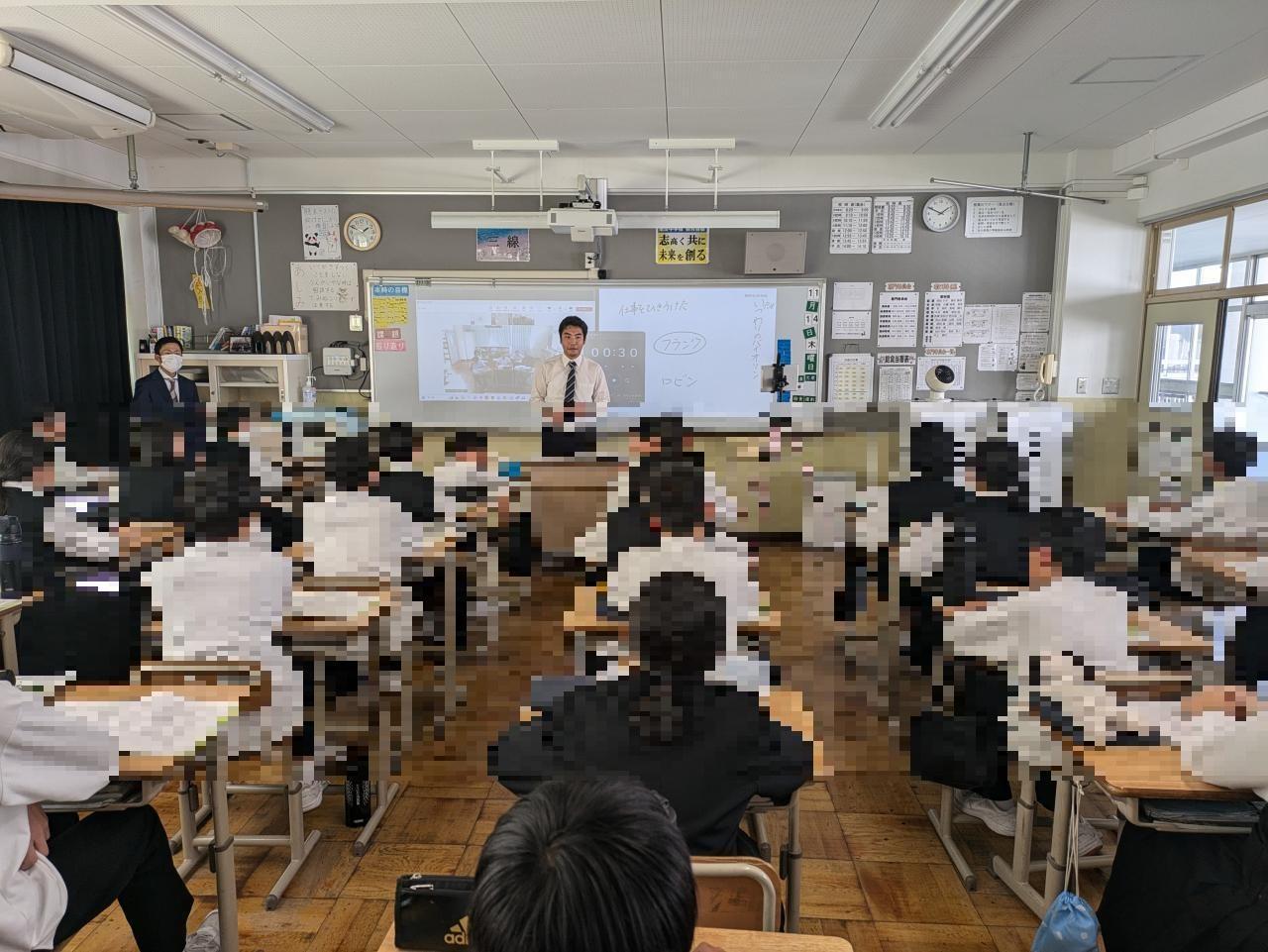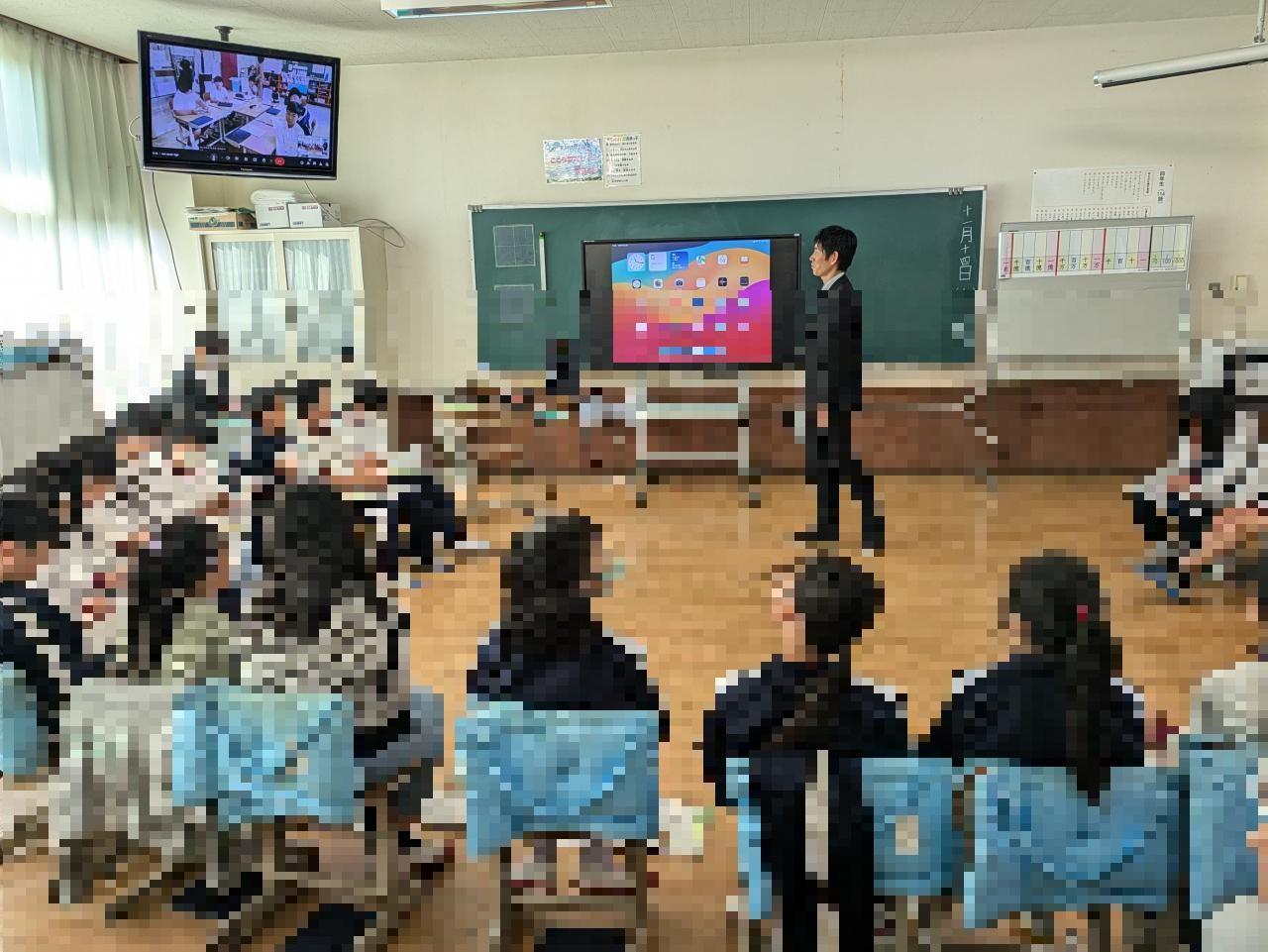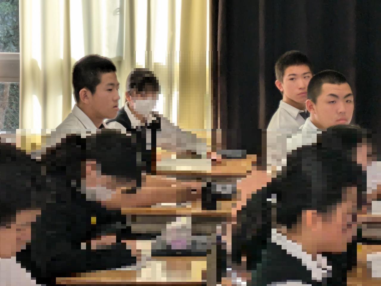 3年生は南淡中の2つのクラスに分かれてリアル授業に参加しました。