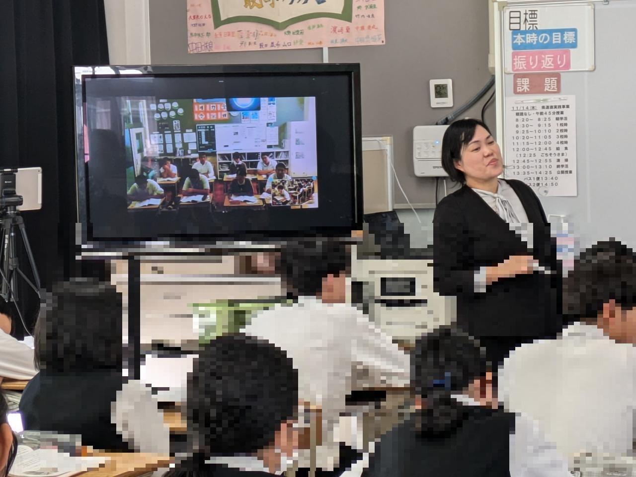 1年生は平見先生が南淡中で授業をして沼島中とオンライン授業をしました