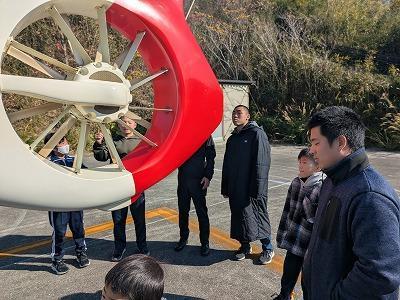 という訓練でした。その訓練の成果と課題は我々には分かりません・・・しかしながら、児童生徒のみなさんは、ドクターヘリに大変興味を持って、見学しヘリのクルーの方もていねいにいろいろ質問に答えてくださりました。また、10数メートル先でヘリの迫力ある離発着を見ることなど貴重な経験ができました。4/25に行く予定の2025年大阪・関西万博で「空飛ぶクルマ」の商用運航は断念と先日、発表され見ることは叶わないと思いますが、今後、近い未来で「空飛ぶ車」を見て、そして、君たちはそれに「乗る人」になるかもしれませんね。