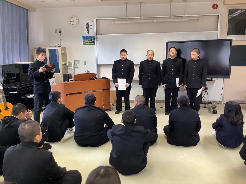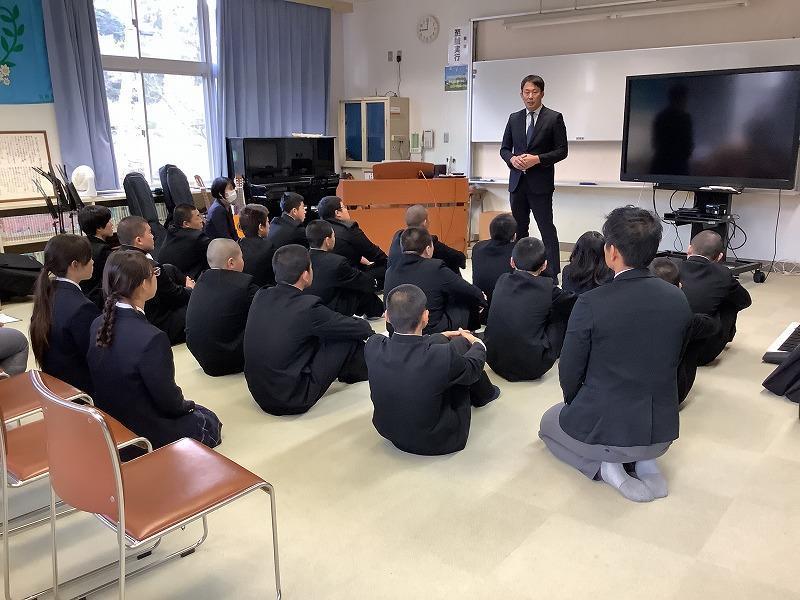 終業式が終わり教室で通知簿をもらっているところです。数字、評価を見て喜んだり、悔しがったり・・。それは、あなたにとって成長のほんの一部分であって、数字では現れない部分で大きく成長したと思います。これから社会の一員となる中で、あなたにとって「大切な財産」となる成長でした。今学期、式の中で話したように「うちの生徒、すごいでしょ」「偉いでしょ」「ほんとスーパー中学生です」という場面が多かったです。2学期も楽しかったけど、これから3学期あなた方の活動、成長が本当に楽しみです。