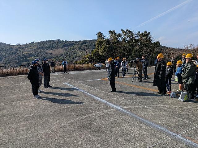 4時間目は、ヘリポートのさらに上にある避難場所へ向かうためのルートを消防団の方に先導いただき確認しました。避難路を覆う草々は刈ってくれてありますが、私など本当に急こう配の坂で自分の体を運ぶのが精いっぱい(中でも一番楽なコースでしたが・・・)でした。しかし、小中学生はスッス、スッスと歩を進めていました。もし、避難しなければならない状況になれば、手を引いたり時にはおぶったり、そして、元気を出せるよう話しかけ、励ましながら地域の力となれそうです。