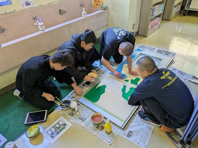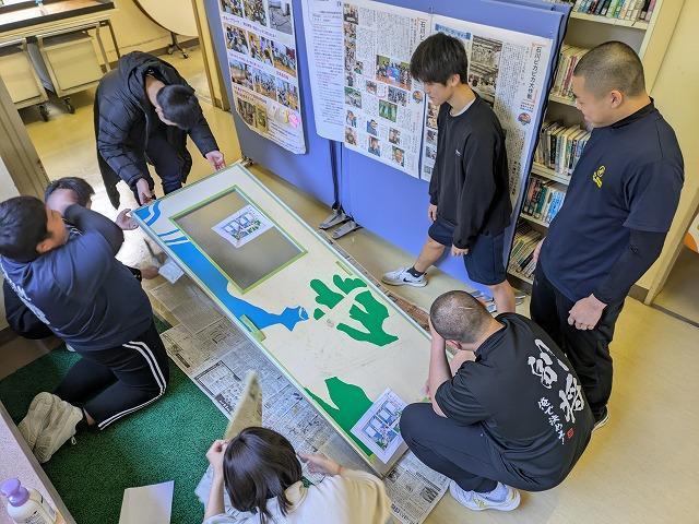 破壊ではなく、扉をはずして大胆にも扉全体に自分たちの足跡、卒業作品を少しずつ作り上げています。後輩に「後はよろしく!!」なんてことなどないように卒業式までに仕上げてね