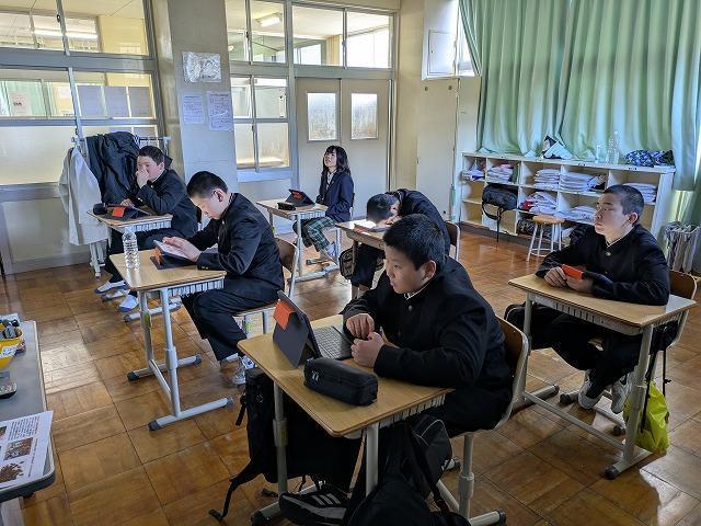 1年生は、来年度のトライやるウィークに向けて南淡中とオンライン