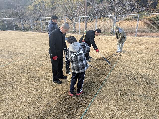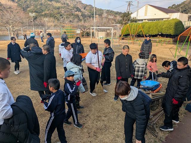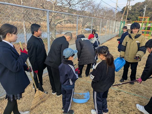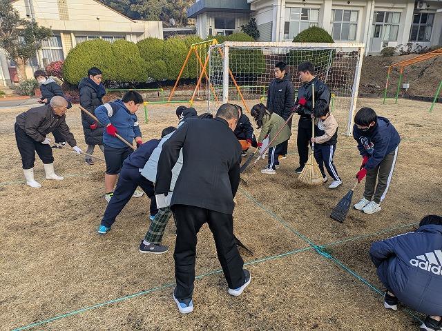 今日は、登校してすぐに沼島小中学校自慢の芝生グラウンドの枯れた芝生駆除作戦を縦割り班で実施しました。リーダーは事前に教えを受けたように班員に指示し活動することができました。清掃活動でもなんでも楽しそうにするので一緒にかつどうしていてもほのぼのします。今のこの仲間たちとこんな体験できる機会も残り少なくなってきましたね。