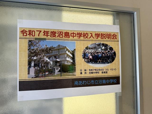 先ほど2025年度入学希望者を対象に入学説明会を実施しました。今日参加してくれた6年生は沼島地区1名(男子1名)特認区3名(男子2名女子1名)の計4名でした。本校は公立中学校ですが、まだまだ絶賛、入学生募集中です。今日、参加してくれた6年生のお友達、また、保護者様のお知り合いに「あんしんネット」の沼島中学校の楽しい日々の様子をみていただいて、沼島に移住してもしくは特認区制度を利用して「3年間、楽しい、充実した中学生生活を一緒に送ろうよ」とお誘いください。今の3年生の保護者様も本当に淡路島へ、沼島中学校へ来ていただく機会が多く「本当に思い切って沼島中学校に行かせて良かった」とおっしゃってくださっています(ほんとに~?と思う方は直接、3年生の保護者にお聞きください。そう答えてくれるはずです・・・多分・・・きっと・・・) また、一緒に新しい沼島中学校のページを創っていきましょう。