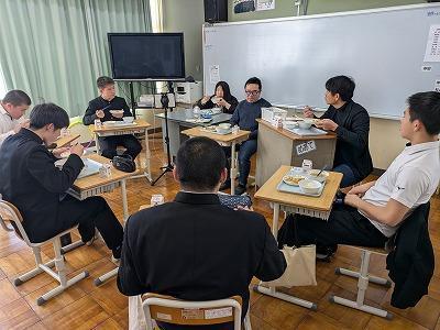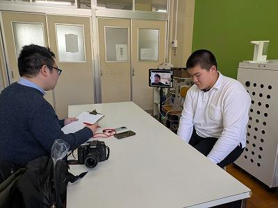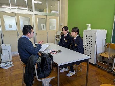 ライターの小野和哉氏が沼島に来島し沼島の祭りについて取材しました。その一環として、沼島の伝統芸能を継承しようと沼島音頭に取り組んでいる沼島中学校の活動の取材がありました。午前中は、本校の沼島音頭の指導に当たってくれている伝統文化保存会の磯崎さん、午後からは特認区生として本田くん、寺田くん、沼島地区生として山田碧夏さん、山田汐夏さんが沼島中学校を代表してインタービューを受けてくれました。小野さんは、盆踊りにハマり全国の祭りを取材し、祭り、郷土芸能、民謡、の魅力を発信しています。小野さんはヤマハのWebページで「それでも祭りは続く」との連載コラム(下記URL参照)を担当していて、今日の取材は、そのページで紹介される予定です。小野さんは、実際に数年前に沼島の盆踊りにも参加した経験があるそうです。