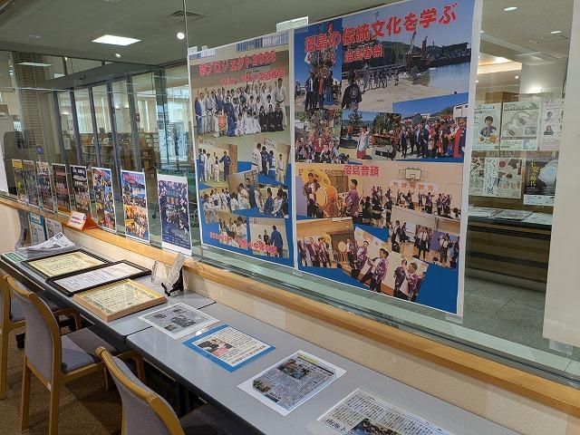 沼島行の船まで時間があったので市立図書館に挨拶をしに行ってきました。今日から3/14までの短期間の開催です。一年間の活動が動画で、ポスターで、作品でコンパクトにかつ内容深く展示されていました。熱心に見学してくれている方もいました。都合が付けばぜひお越しください。能登半島地震および豪雨災害募金の募金箱の図書館カウンターに置いていただきました。沼島小中学校の生徒が「動いた」からいろいろな方面から力を貸してくれています。本当に感謝です。
