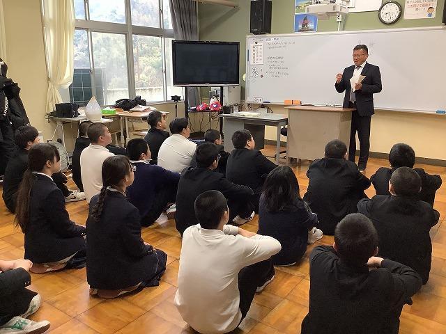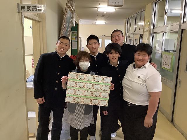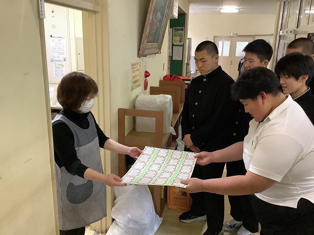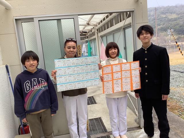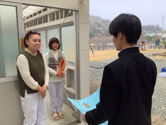 三年生が卒業を前に給食センターの調理員さんと校内の用務員さんに「ありがとう」メッセージを届けました。毎日出していただいた給食では、日々の生活のエネルギーをいただきました。用務員さん、1年生2年生の時は安達さんに3年生は藤田さんには、いろいろとお世話いただいたり、お話を聞いていただき心のエネルギーをいただきました。その愛情に支えられて3年間の学校生活を無事におくることができました。ほんとうにありがとうございました。教職員を代表して、私たち職員とは違った立場でアプローチで子どもたちを支え育てていただきありがとうございます。巣立ちを迎える子どもたちはいただいたエネルギーで沼島を巣立っていきます