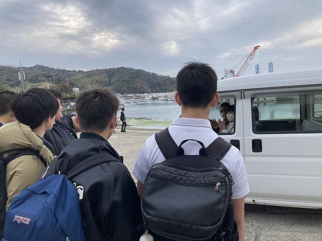 3年生は、3年間本当にお世話になった沼島のみなさんに「ありがとうございました」とお礼を言いながら汽船場に向かいました。最初、不安いっぱいで通った通学路も、沼島のみなさんがあたたかく声をかけてくださり、勇気、元気をいただける通学路となりました。明日の朝も、そして、帰りも僕たちのできること「元気いっぱいのあいさつ」をしますね。