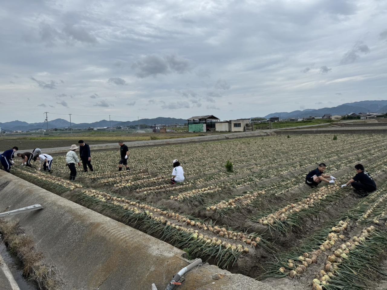 おうちで農業をしている生徒には見慣れた田んぼの風景ですが、初めて体験する生徒たちには、田んぼに入ってタマネギを収穫、葉っぱと根っこを切り、コンテナにタマネギを詰め、その重い重いコンテナを運ぶという一連の作業が、一つ一つ大変な体験だったことでしょう。普段は入れない冷蔵庫の中にも入れていただき、タマネギが食卓にのるまでの、農家さんの苦労を体感することができました。