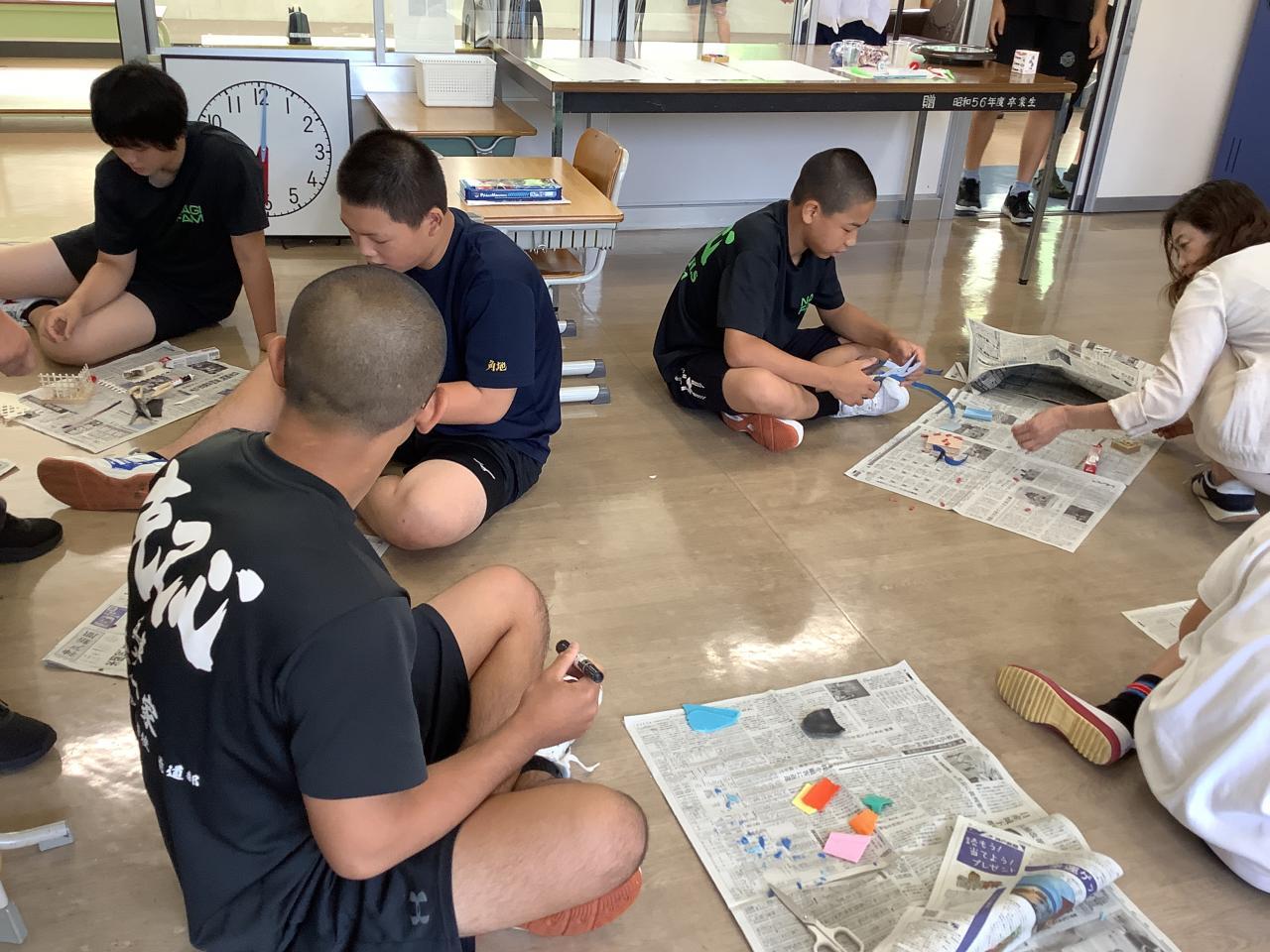 1時間あまりの制作時間で、小学生も中学生も夢中で作品を作り、見た人が思わず「おおっ!」と声の出る、立派な作品がたくさん出来上がりました。竹下さんから「どう創ればいいかわからないというお子さんも多いですが、沼島の子はすぐにイメージを描いて創っていますね。小学校低学年の子も迷いがないです。」とおっしゃっていました。できた作品は沼島文化展等で展示しますので、楽しみにしていてください。