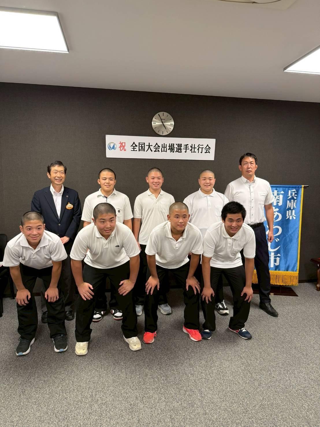 マルちゃん杯全日本少年柔道大会への出場を報告し、市長より激励をいただきました。